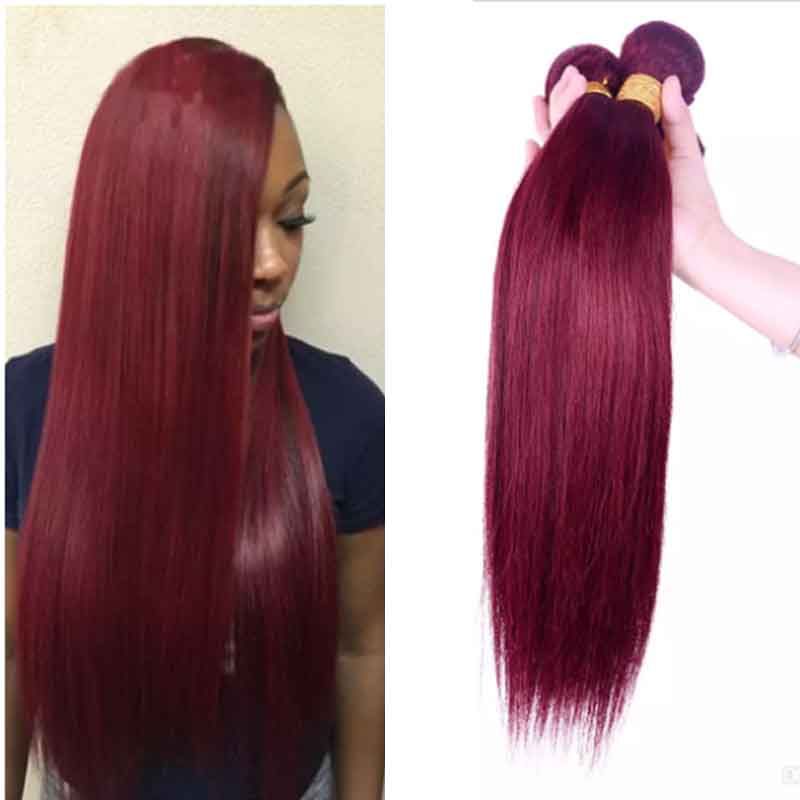 Burgundy Color Straight Hair Weave 3 Bundles Pre Colored Hair