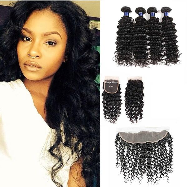 9a Peruvian Virgin Human Hair Bundles With Lace Closure Peruvian