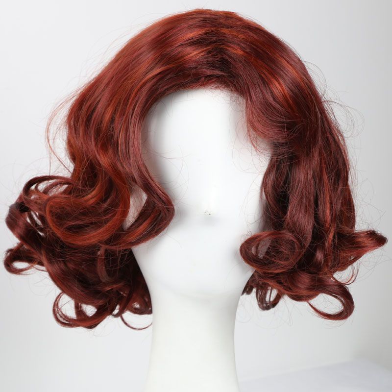 Hot Sale Wig Short Synthetic Dark Red Brown Color Wavy Highlight