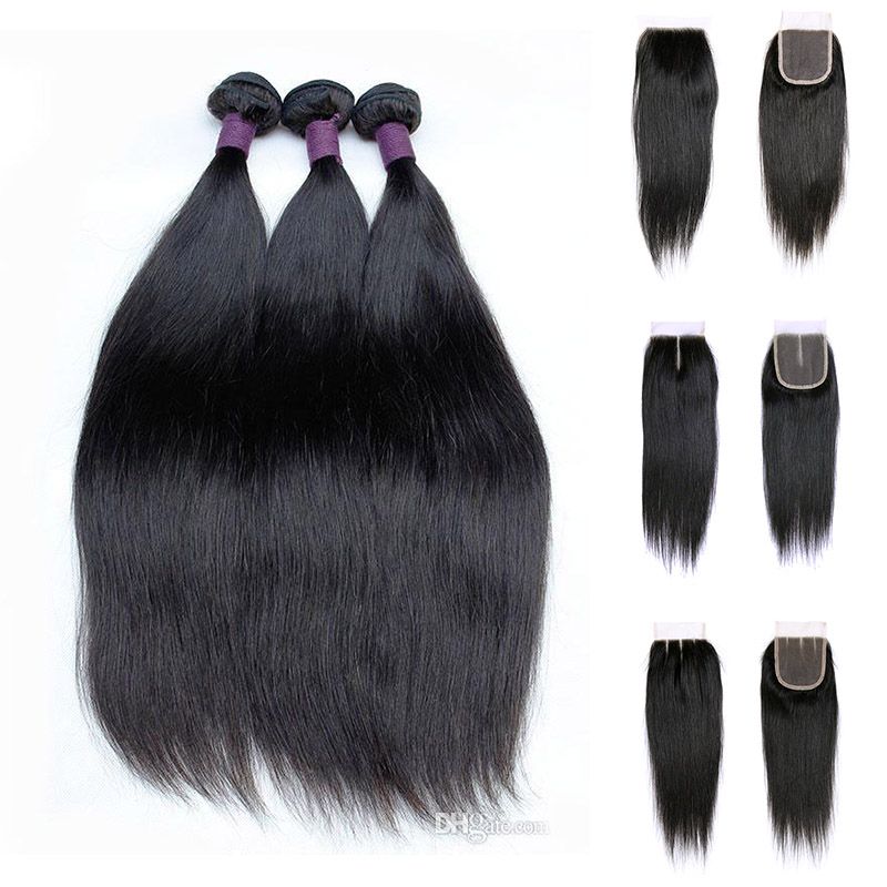 Brazilian Straight Hair Human Hair Bundles With Closure Straight